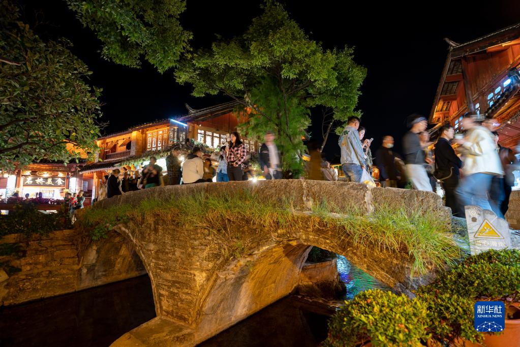 夜幕降臨,華燈初上,云南麗江古城內熙熙攘攘,來(lái)自各地的游客在這里就餐、購物、休閑娛樂(lè ),體驗古城“夜經(jīng)濟”。