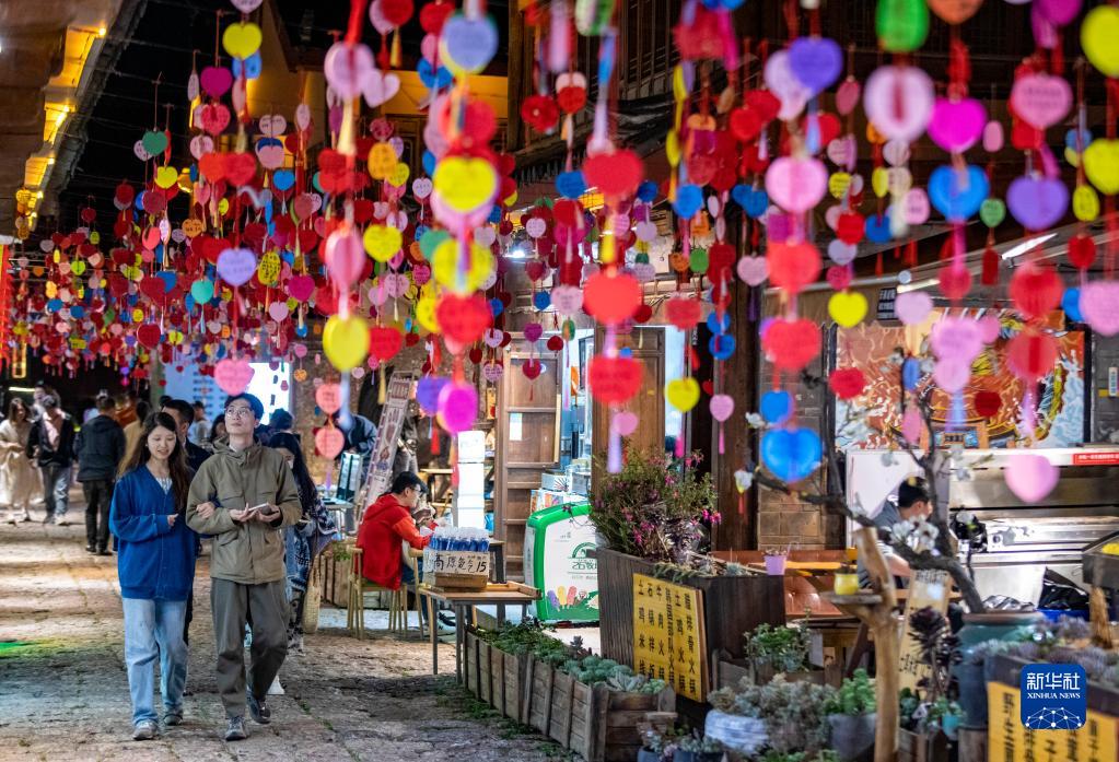 夜幕降臨,華燈初上,云南麗江古城內熙熙攘攘,來(lái)自各地的游客在這里就餐、購物、休閑娛樂(lè ),體驗古城“夜經(jīng)濟”。