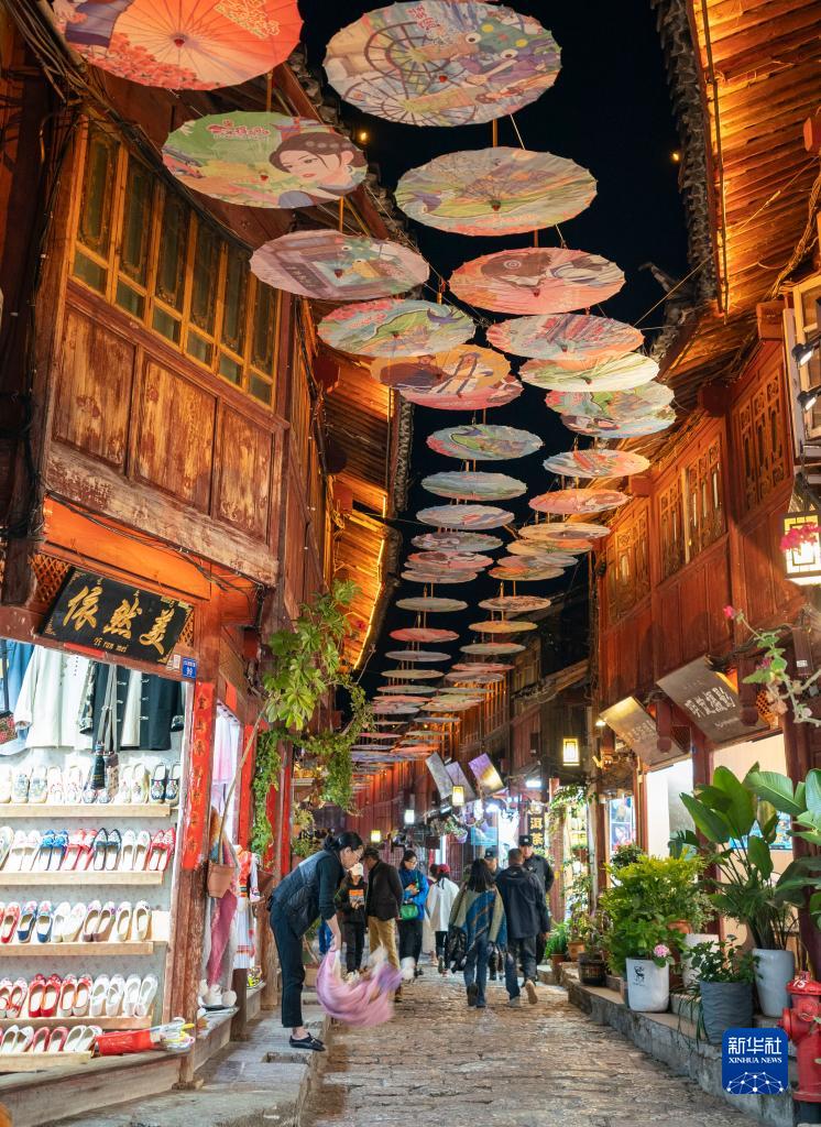 夜幕降臨,華燈初上,云南麗江古城內熙熙攘攘,來(lái)自各地的游客在這里就餐、購物、休閑娛樂(lè ),體驗古城“夜經(jīng)濟”。