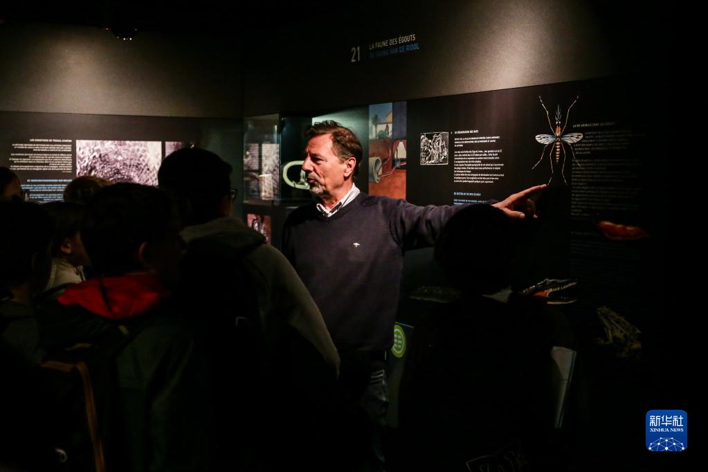 5月16日,在比利時(shí)布魯塞爾的下水道博物館,講解員為大家講述下水道中的生物知識。
