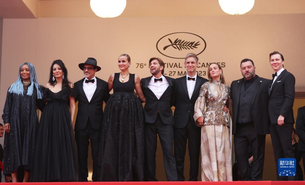 5月16日,在法國戛納舉行的第76屆戛納國際電影節上,主競賽單元評審團主席、瑞典導演魯本·奧斯特倫德(中)攜眾評委亮相開(kāi)幕式紅毯。