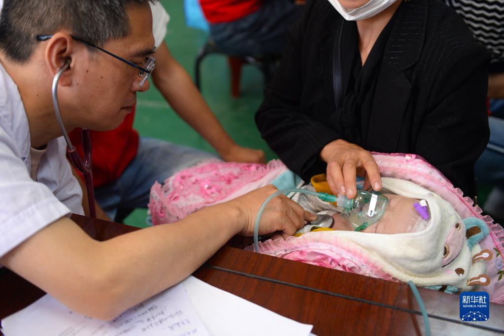 5月16日,在墨玉縣人民醫院,鄭州市第七人民醫院的醫療專(zhuān)家為孩子做檢查。