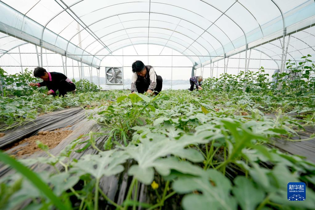 5月17日,河北省柏鄉縣馬村瓜農在西瓜種植大棚內勞作。