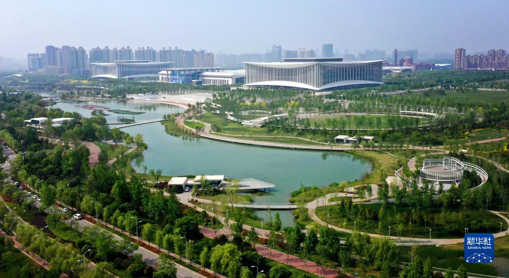 位于西安浐灞生態(tài)區的西安國際會(huì )展中心(4月26日攝,無(wú)人機照片)。