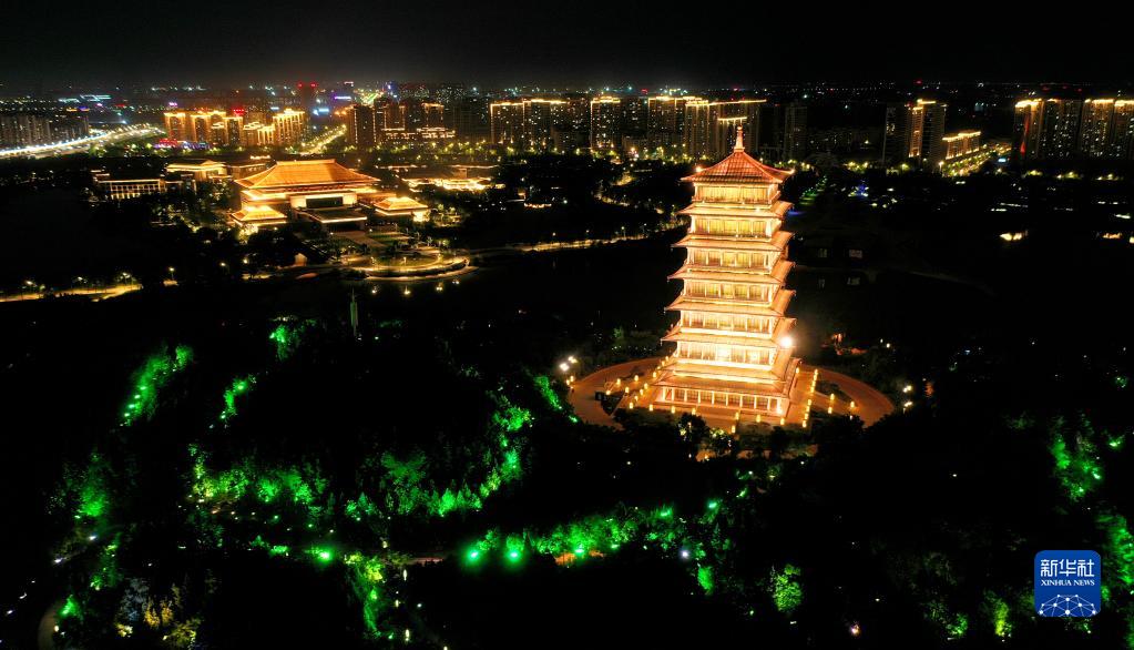 位于西安浐灞生態(tài)區的長(cháng)安塔(5月1日攝,無(wú)人機照片)。