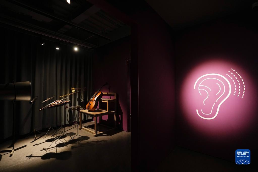 這是在位于北京的聲音藝術(shù)博物館“聲音是什么”展區展示的早期錄音場(chǎng)景(5月11日攝)。