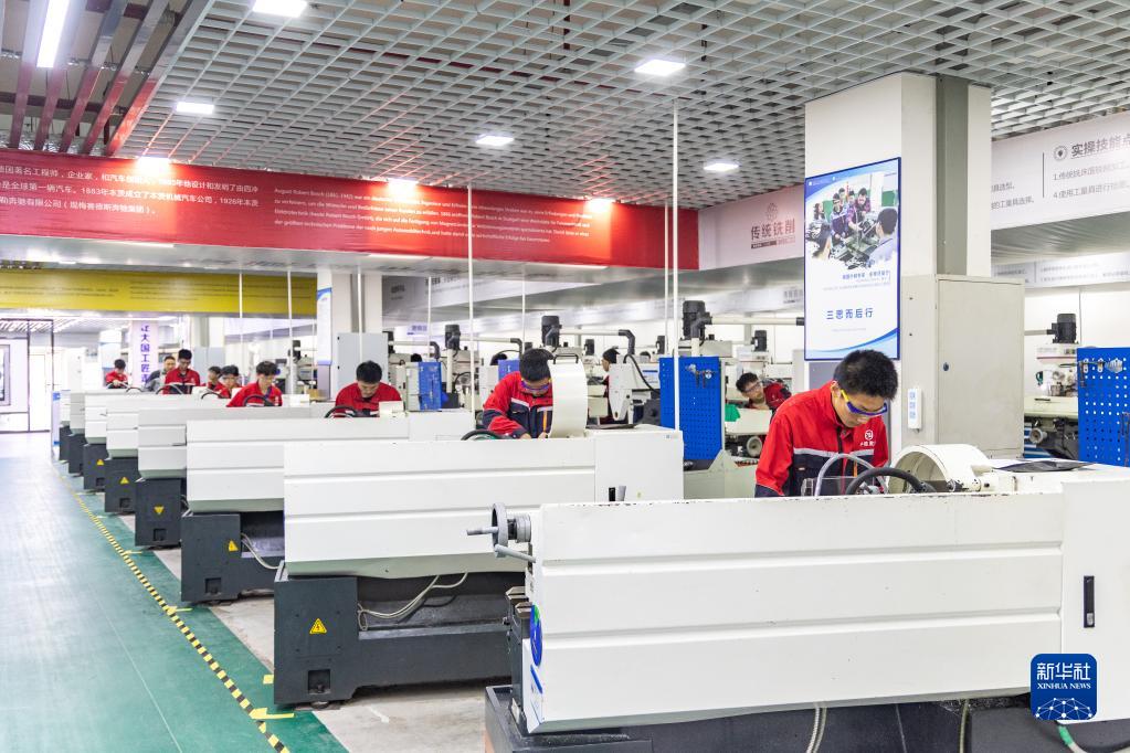 5月17日,在位于重慶永川職教中心的中德產(chǎn)業(yè)學(xué)院,學(xué)生在普車(chē)區進(jìn)行實(shí)訓。