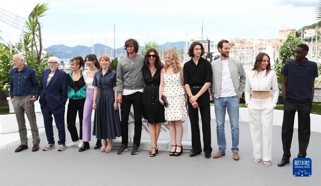 5月17日,在法國戛納舉行的第76屆戛納國際電影節上,開(kāi)幕影片《杜巴利伯爵夫人》的導演麥溫·勒·貝斯柯(左七)攜主創(chuàng )亮相拍照式。