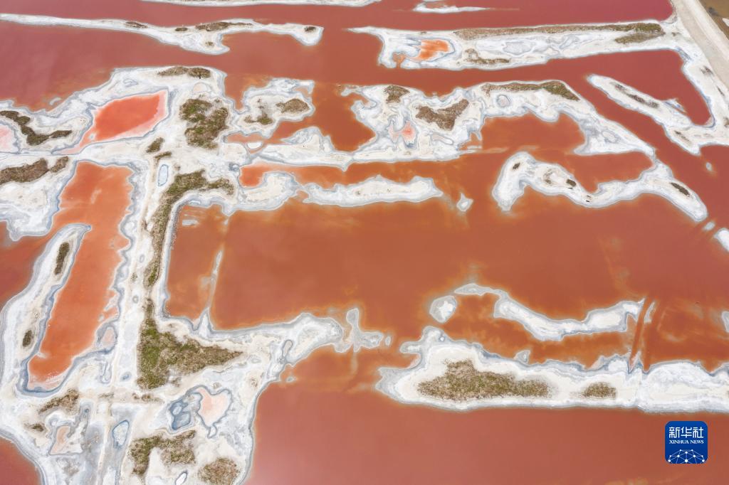 這是5月17日拍攝的運城鹽湖一景(無(wú)人機照片)。