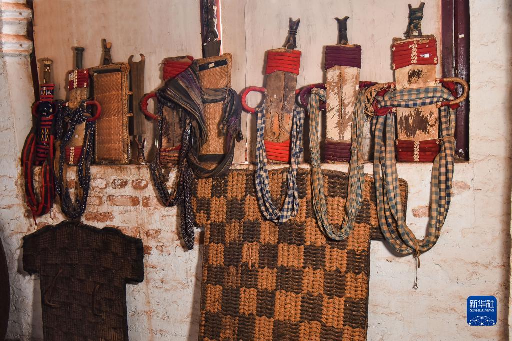 這是4月12日在喀麥隆西部大區豐班的巴蒙王宮博物館拍攝的過(guò)去巴蒙戰士使用的武器。