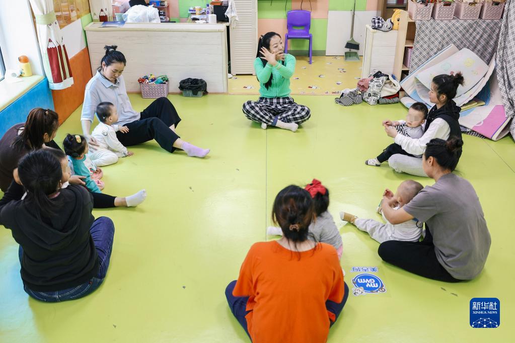 在吉林省聾兒語(yǔ)言聽(tīng)力康復中心,1-3歲的小朋友在家長(cháng)陪伴下進(jìn)行聽(tīng)力早期干預親子課程(5月17日攝)。