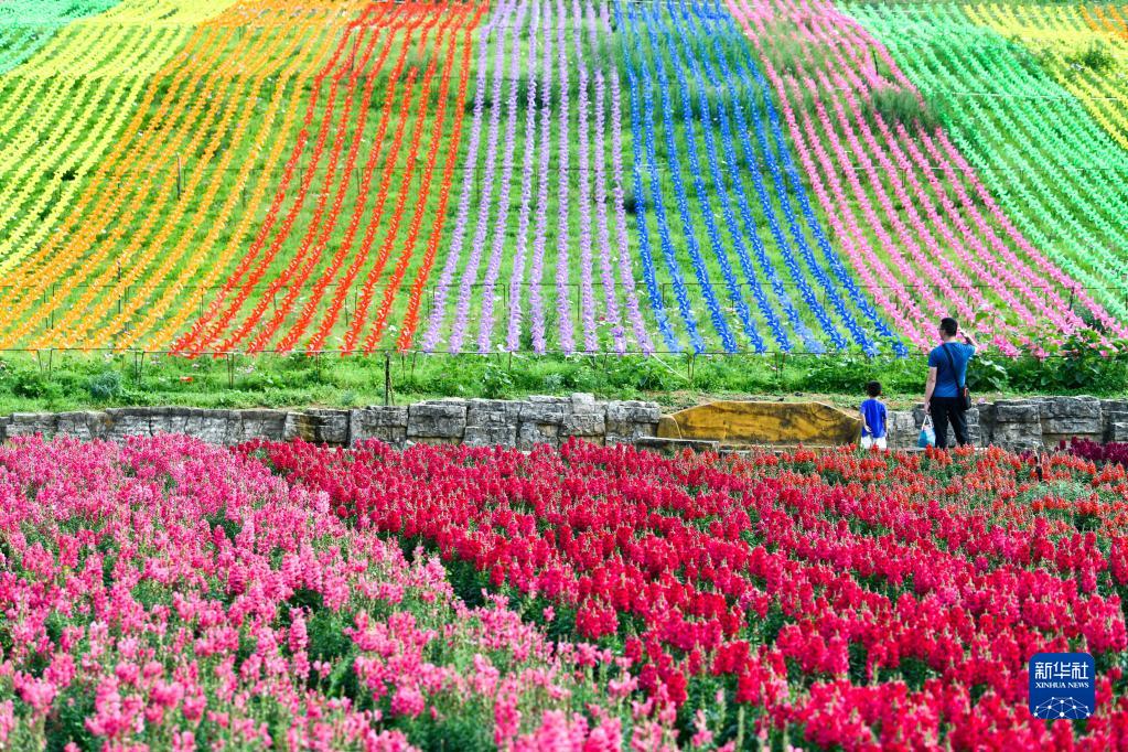 初夏時(shí)節,貴州省黔東南苗族侗族自治州麻江縣宣威鎮藥谷江村種植的500余畝金魚(yú)草競相開(kāi)花,色彩斑斕的花谷吸引眾多游客前來(lái)觀(guān)花賞景。
