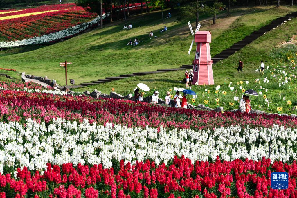 5月17日,游客在貴州省麻江縣宣威鎮藥谷江村賞花。