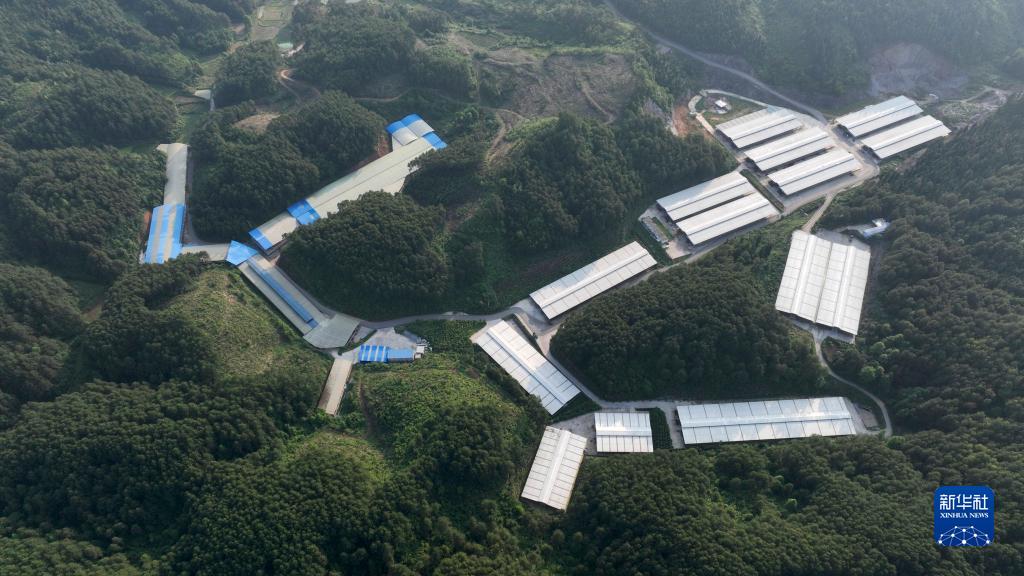 坐落在貴州省黔東南苗族侗族自治州黃平縣谷隴鎮崇山峻嶺中的大型肉牛養殖基地(無(wú)人機照片,5月17日攝)。
