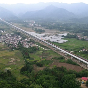 當日,在中鐵十一局池(州)黃(山)鐵路鋪軌施工現場(chǎng),一對500米長(cháng)鋼軌鋪設在無(wú)砟軌道板上,這標志著(zhù)池黃鐵路全線(xiàn)開(kāi)始鋪軌。池黃鐵路全長(cháng)約125公里,設計時(shí)速350公里,是武(漢)杭(州)快速鐵路通道的重要組成部分。