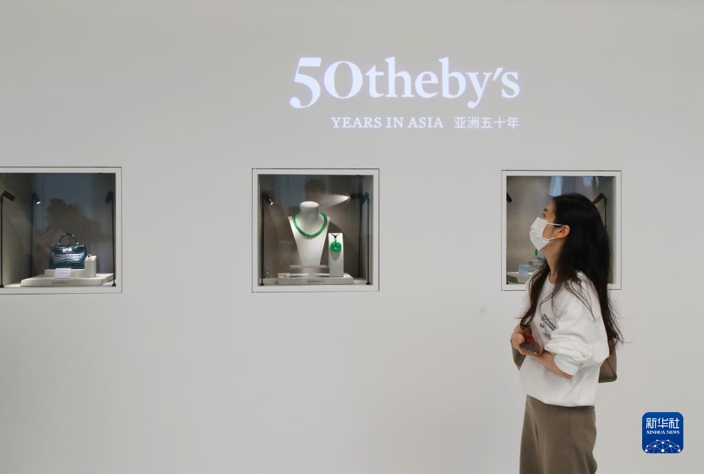 5月18日,嘉賓從蘇富比空間內的藏品展示櫥窗前走過(guò)。