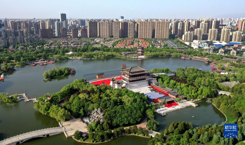 西安大唐芙蓉園(4月25日攝,無(wú)人機照片)。