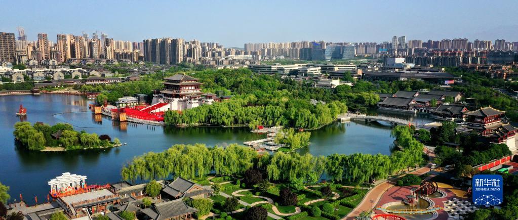 西安大唐芙蓉園(4月25日攝,無(wú)人機照片)。