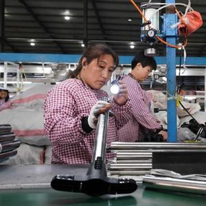 5月18日,河北省平鄉縣一家打氣筒生產(chǎn)企業(yè)的工人在組裝打氣筒。