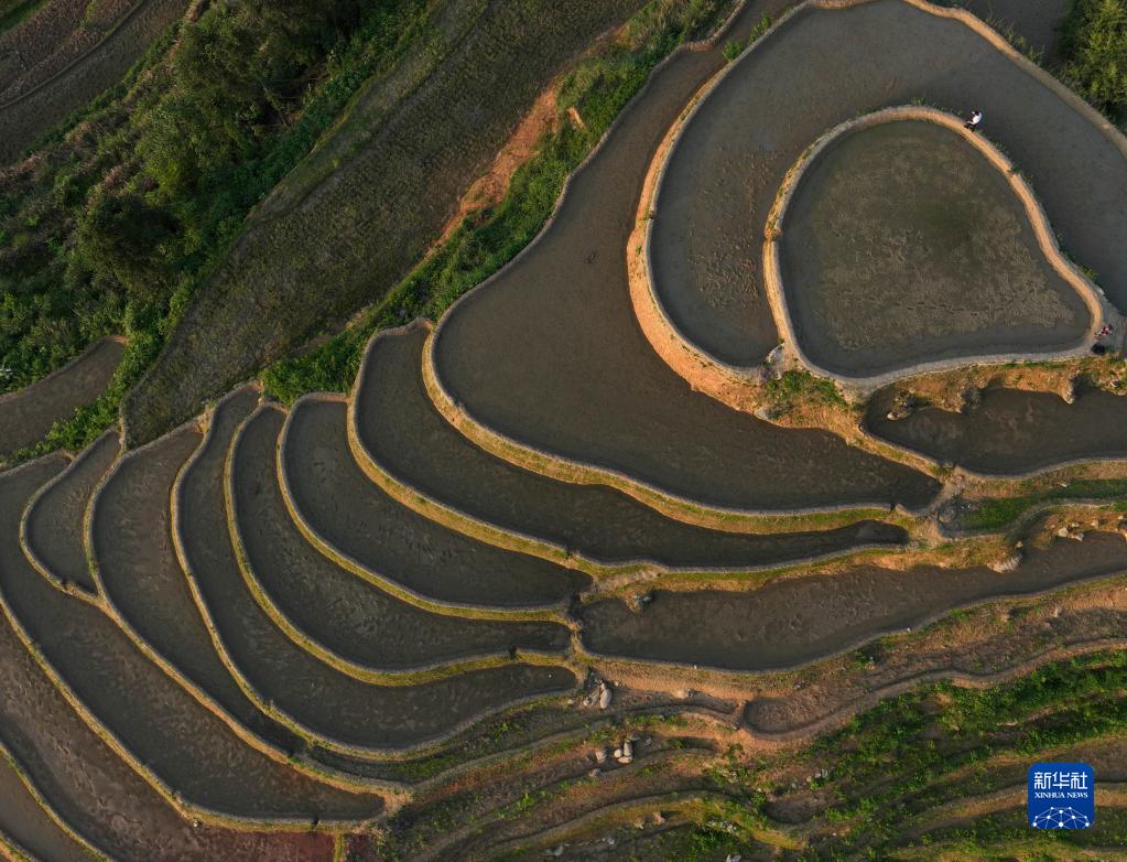 近日,湖南省婁底市新化縣紫鵲界梯田蓄水備耕,水影天光如詩(shī)如畫(huà)。
