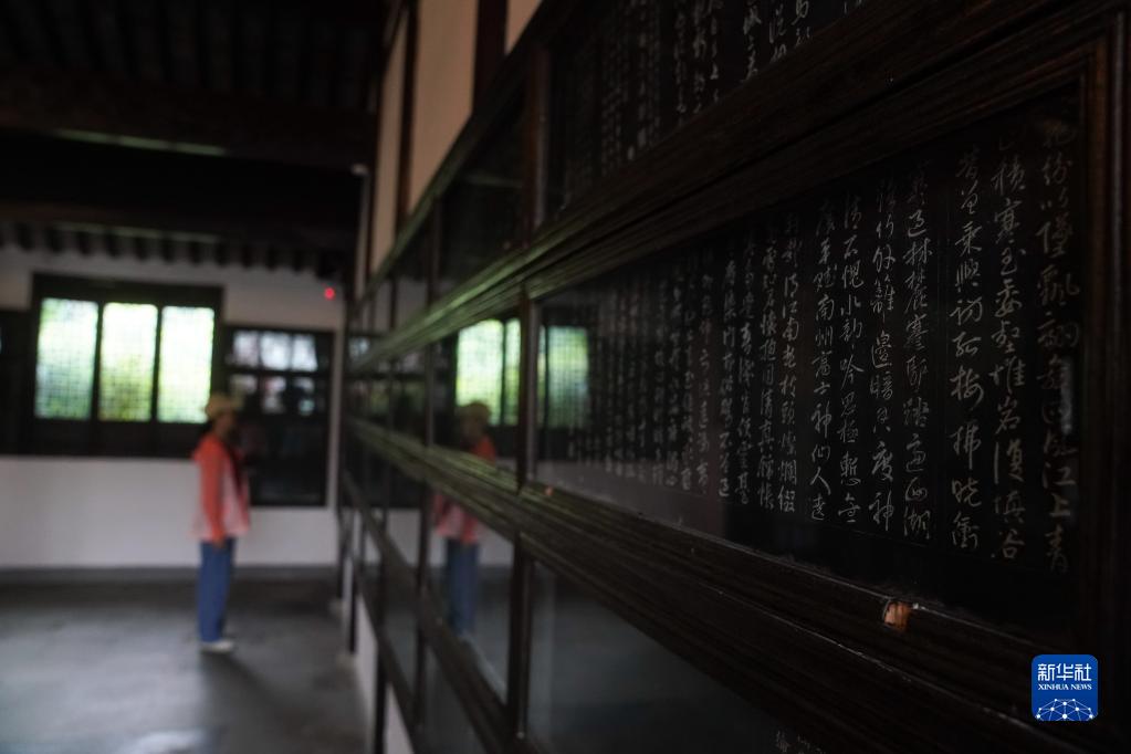 5月17日,游人在參觀(guān)晴山堂石刻。