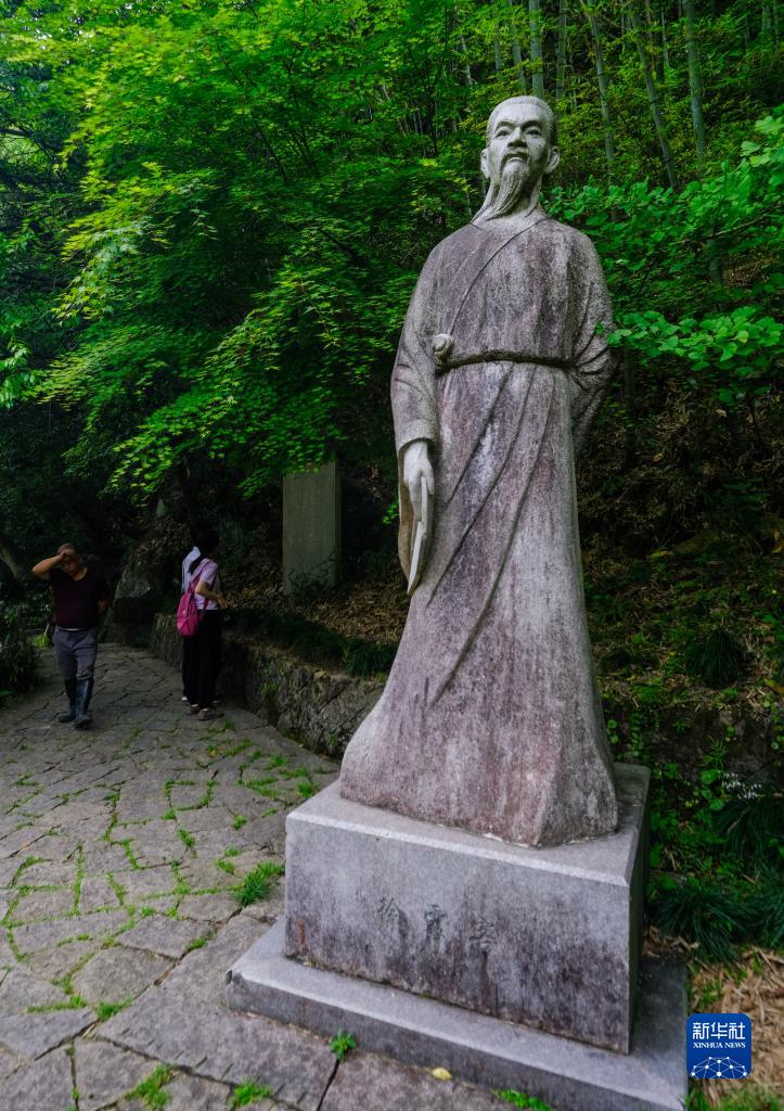 石梁飛瀑景區的徐霞客雕像(5月16日攝)。