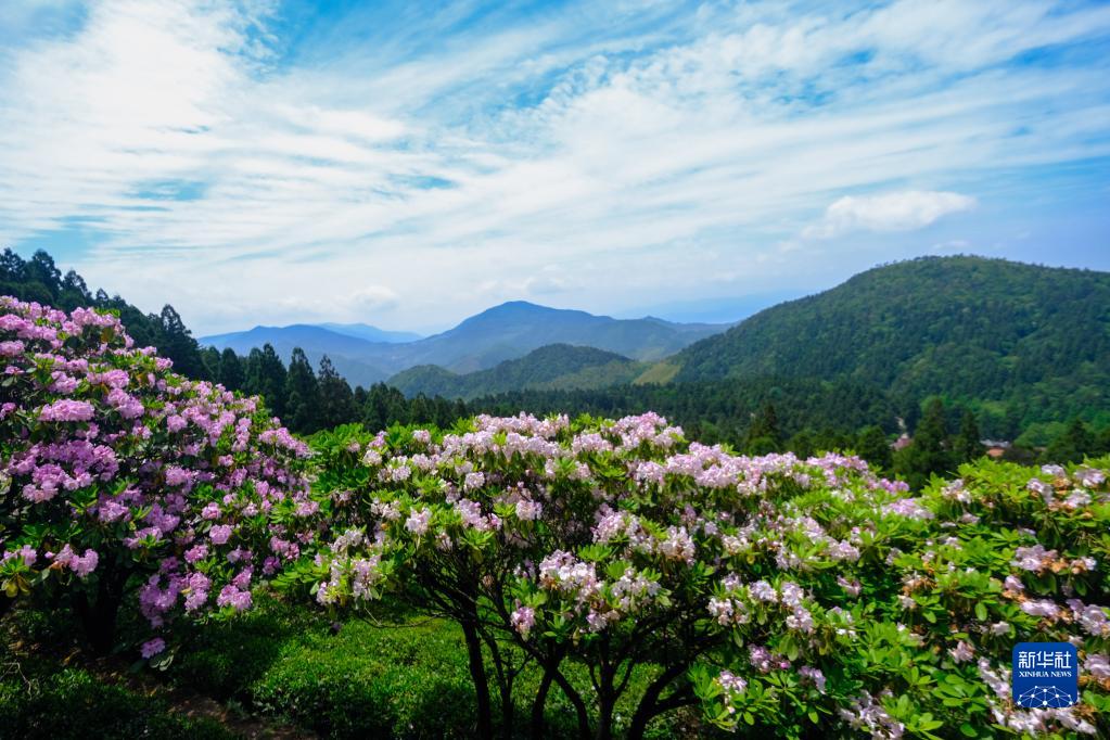 5月16日,在天臺山華頂國家森林公園,云頂杜鵑競相開(kāi)放。徐霞客在游記中寫(xiě)道:“琪花玉樹(shù),玲瓏彌望?!?/p>