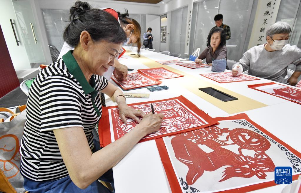 朝陽(yáng)無(wú)限社區的老年人在社區養老驛站參加剪紙活動(dòng)(5月17日攝)。