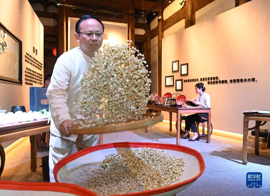 5月18日,非遺傳承人在福州市三坊七巷歷史文化街區向觀(guān)眾展示茉莉花茶制作工藝。新華社記者 李賀 攝