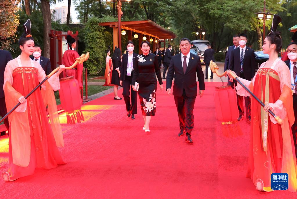 5月18日晚,出席中國-中亞峰會(huì )的中亞國家元首夫婦陸續抵達陜西省西安市大唐芙蓉園,參加在這里舉行的歡迎儀式。這是吉爾吉斯斯坦總統扎帕羅夫和夫人扎帕羅娃抵達。新華社記者 徐子鑒 攝