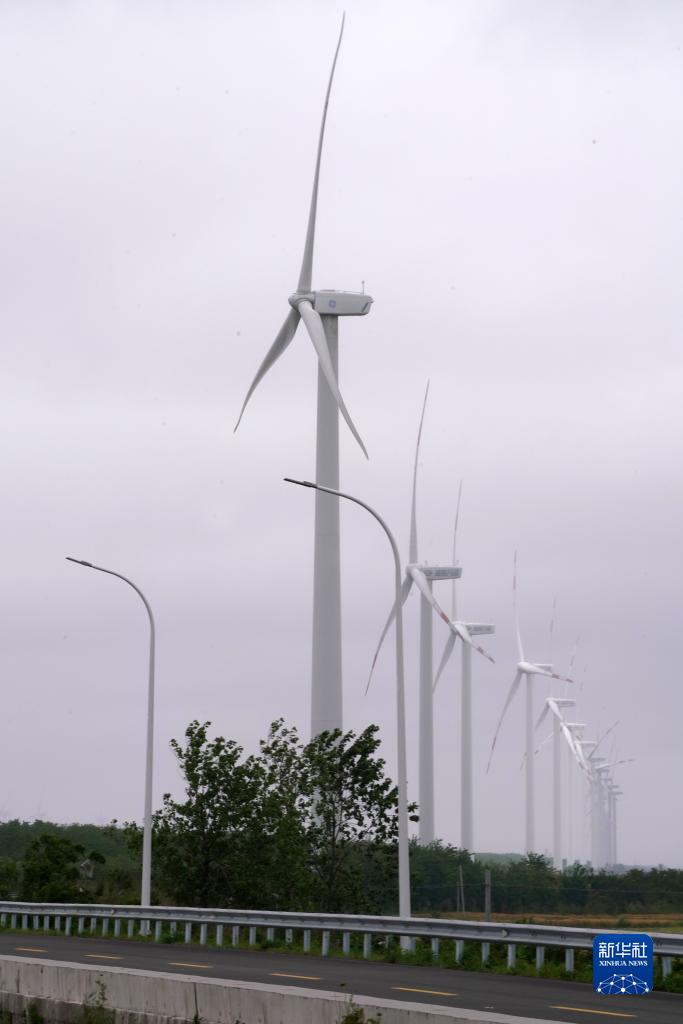 5月18日在江蘇如東小洋口風(fēng)電產(chǎn)業(yè)園拍攝的風(fēng)電設施。