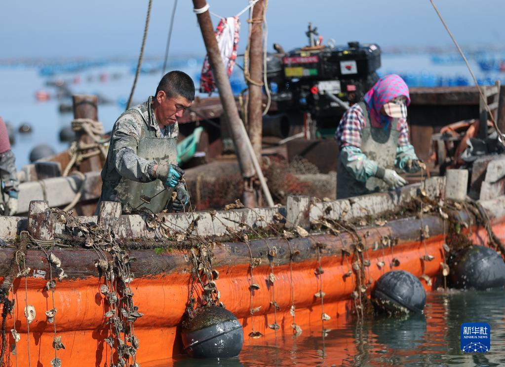 5月18日,廣鹿島鎮的漁民將生蠔苗投入海中。