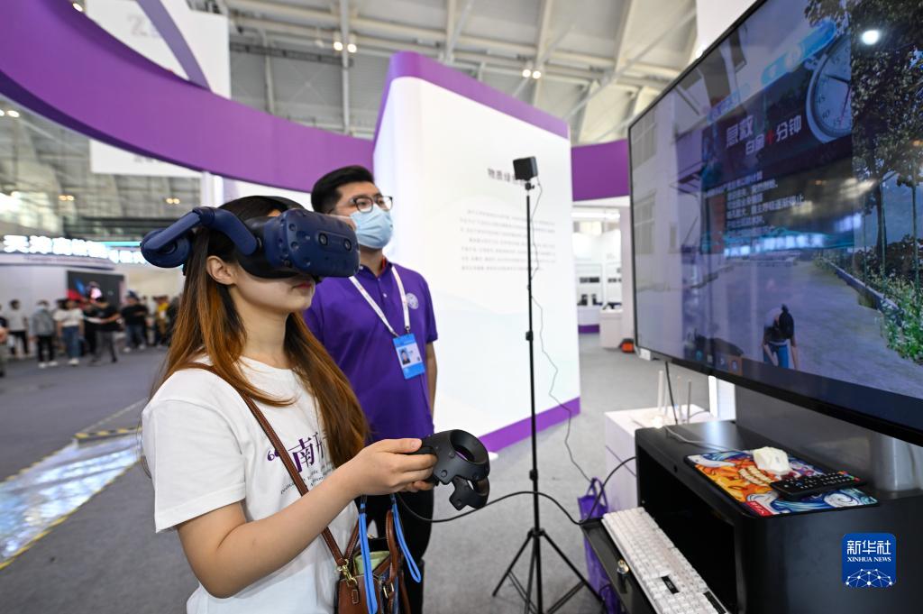 5月19日,觀(guān)眾在第七屆世界智能大會(huì )上體驗虛擬仿真系統。