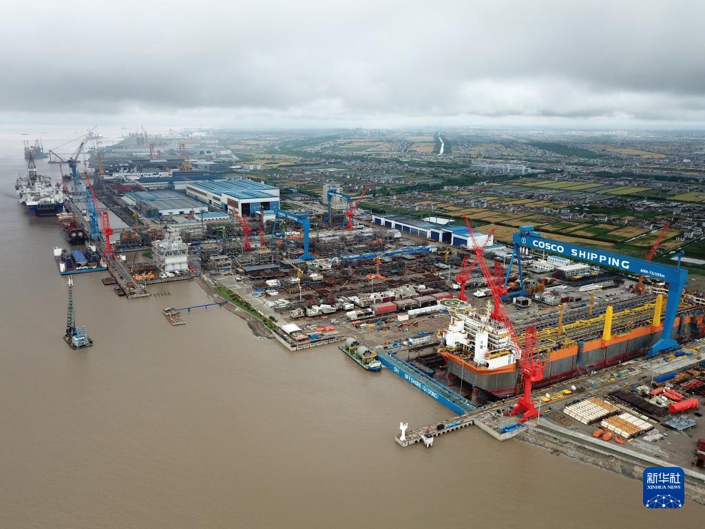 5月19日在江蘇省南通市啟東海工船舶工業(yè)園拍攝的啟東中遠海運海洋工程有限公司(無(wú)人機照片)。