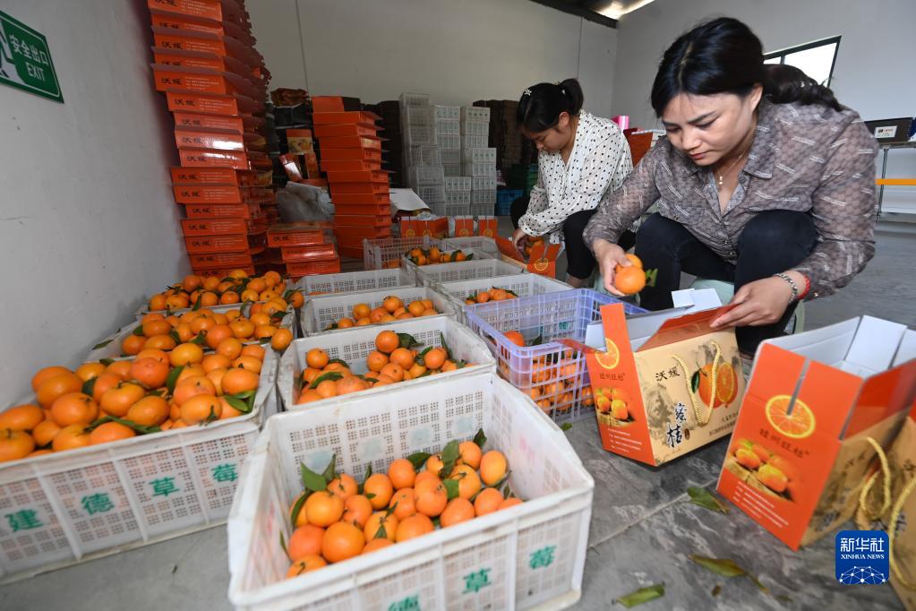 5月19日,建德柑橘科技小院基地的工作人員在打包成熟的柑橘。