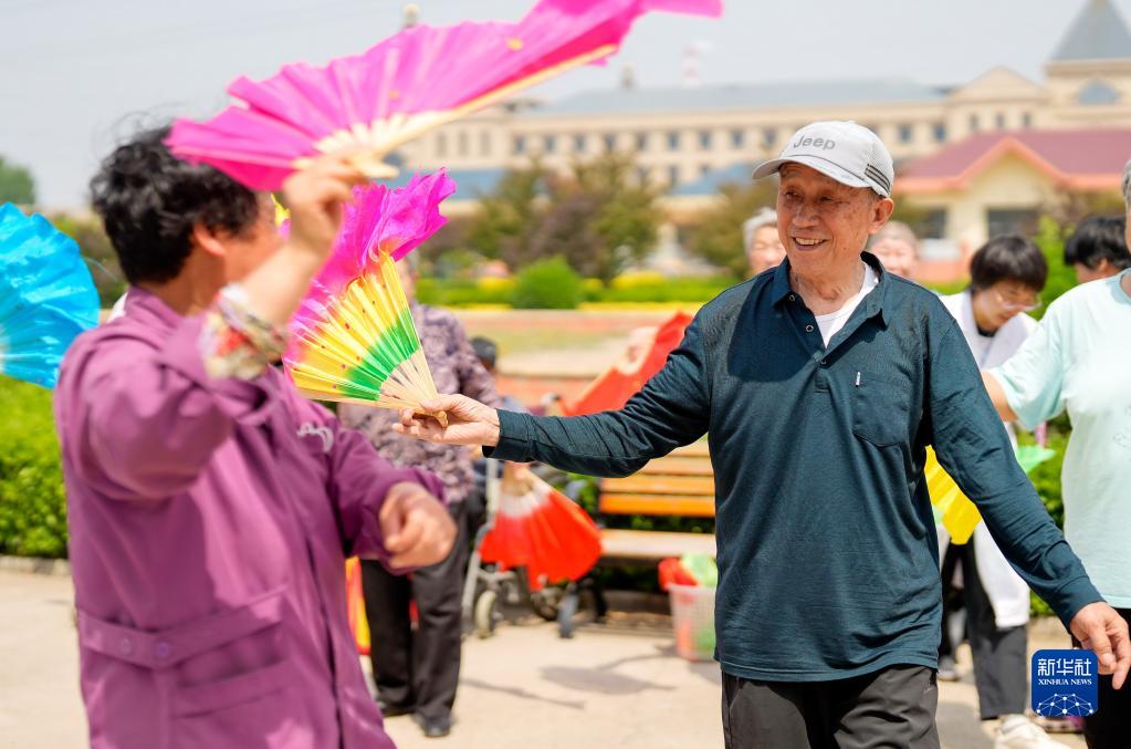 5月19日,居住在河北省灤南縣一家養老機構的老人在扭秧歌。