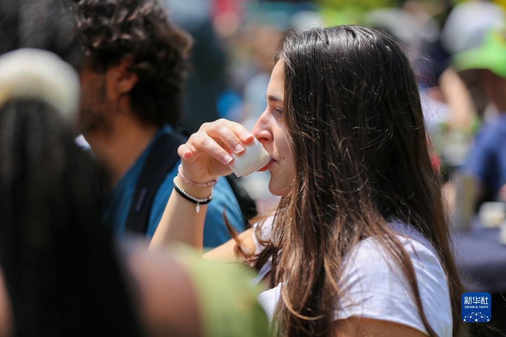 5月19日,游客在韓國首爾廣場(chǎng)品嘗中國茶。