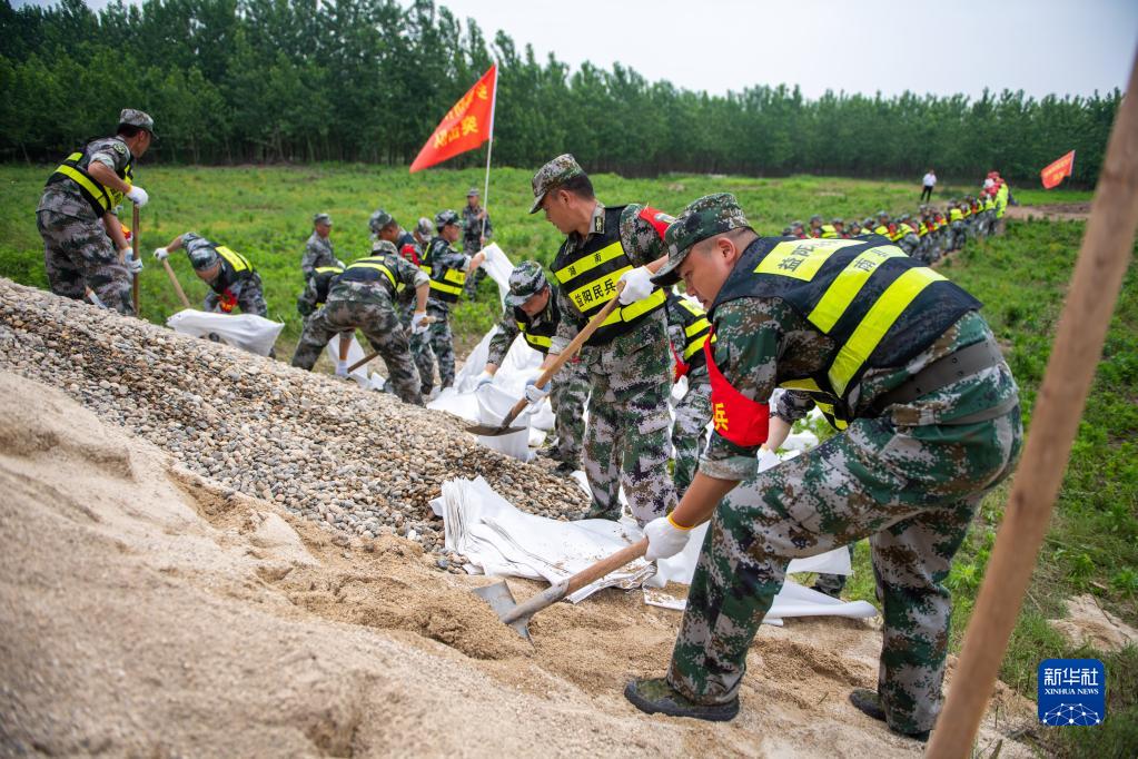 5月19日,在洞庭湖區防汛搶險應急救援演練中,參演人員演練處置管涌險情。
