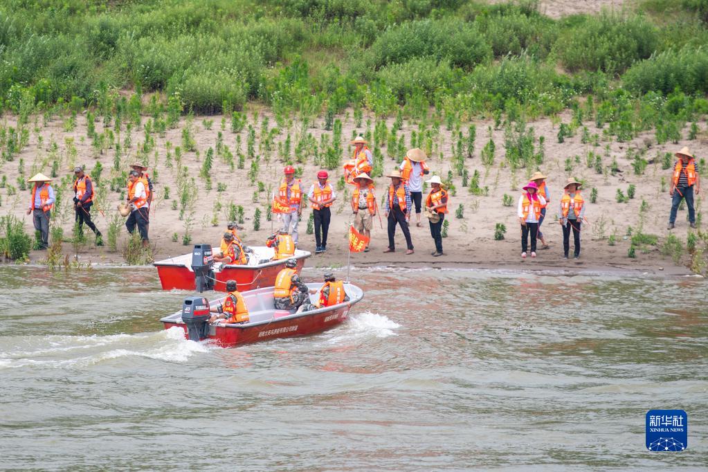 5月19日,在洞庭湖區防汛搶險應急救援演練中,參演人員駕駛沖鋒舟進(jìn)行群眾緊急轉移演練。