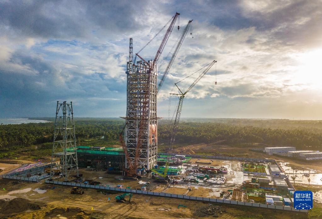 在海南省文昌市拍攝的建設中的海南商業(yè)航天發(fā)射場(chǎng)1號工位(無(wú)人機照片,5月12日攝)。