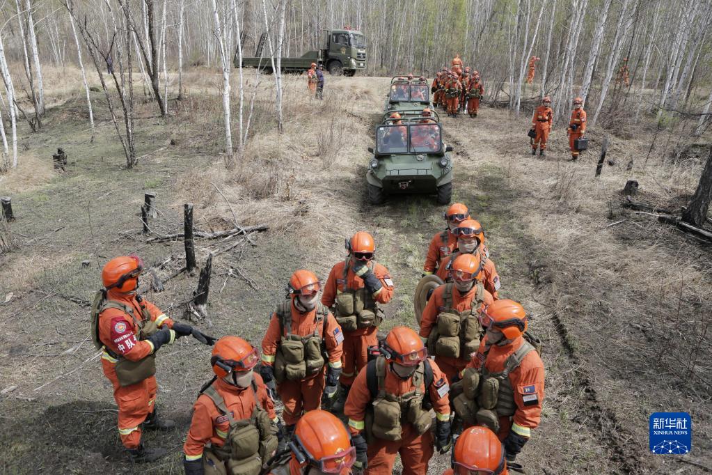 5月17日,在黑龍江呼瑪縣,大興安嶺地區森林消防支隊呼瑪縣大隊十二站駐防點(diǎn)指戰員開(kāi)展以水滅火演練。