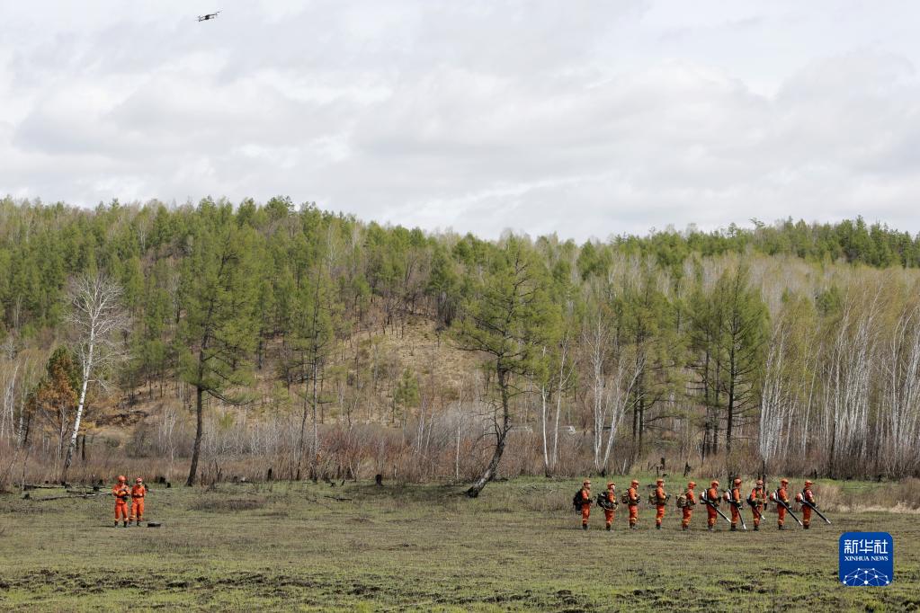 5月17日,在黑龍江呼瑪縣,大興安嶺地區森林消防支隊呼瑪縣大隊十二站駐防點(diǎn)指戰員開(kāi)展以水滅火演練。