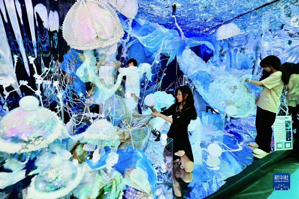5月19日,福建商貿學(xué)校學(xué)生在進(jìn)行“夢(mèng)幻海底世界”主題設計制作比賽。