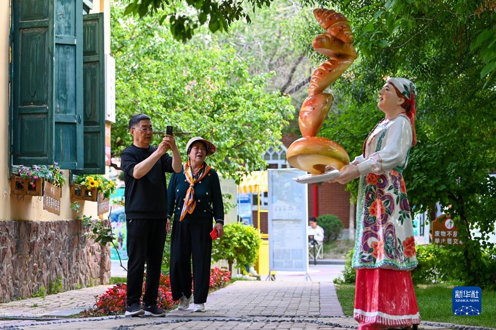 游客在伊寧市六星街打卡拍照(5月19日攝)。