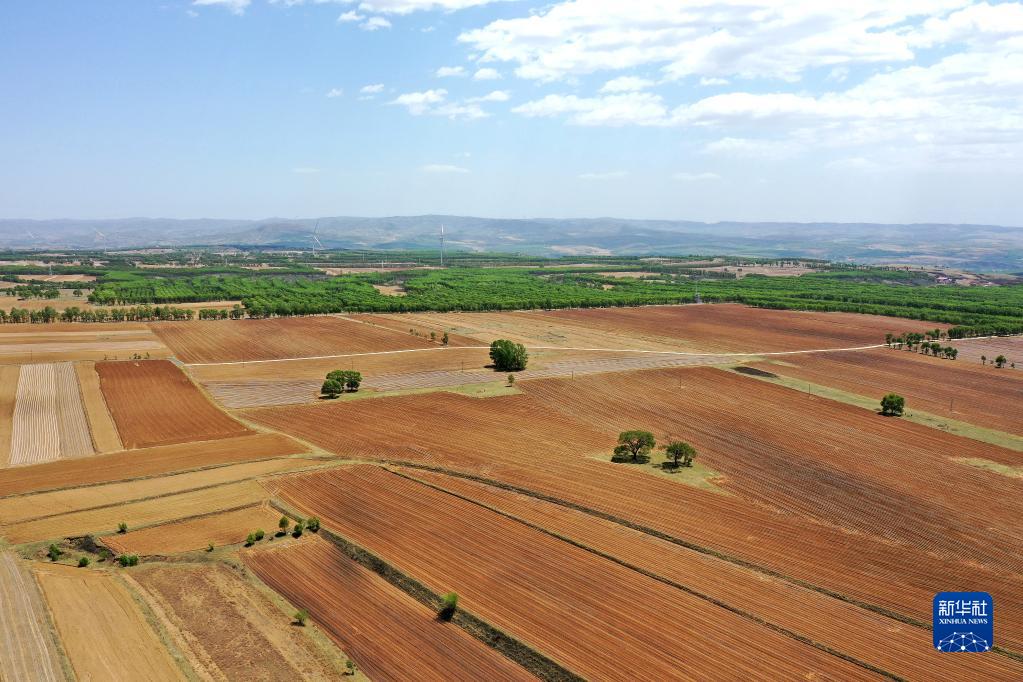 山西省右玉縣四臺溝村田園景色(5月18日攝,無(wú)人機照片)。