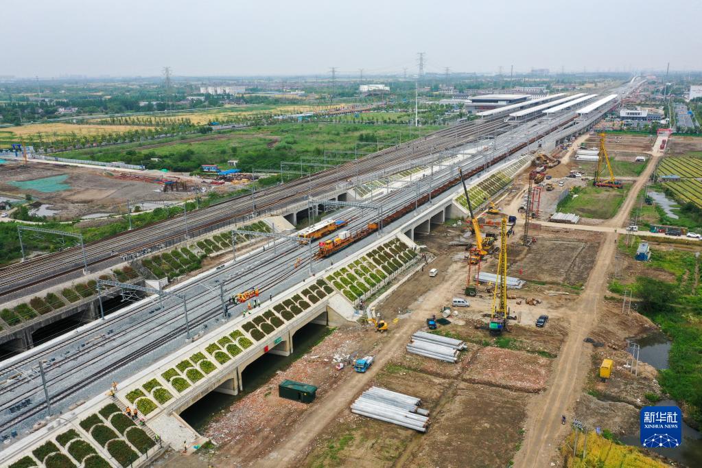 這是5月20日拍攝的滬寧沿江高鐵太倉站施工現場(chǎng)(無(wú)人機照片)。
