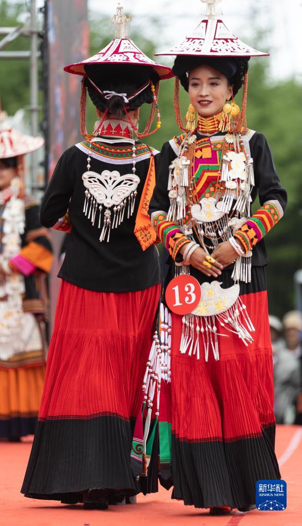 5月20日,彝族姑娘展示傳統服飾。