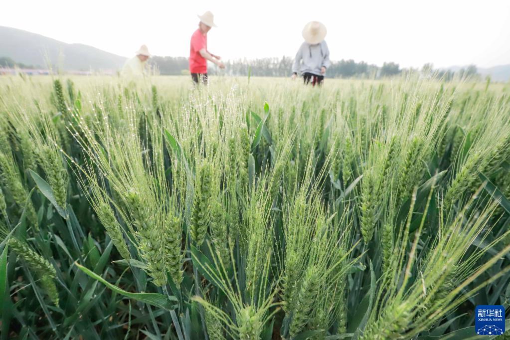 5月19日,河北省遵化市劉備寨鄉安各寨村農民在麥田勞作。