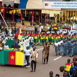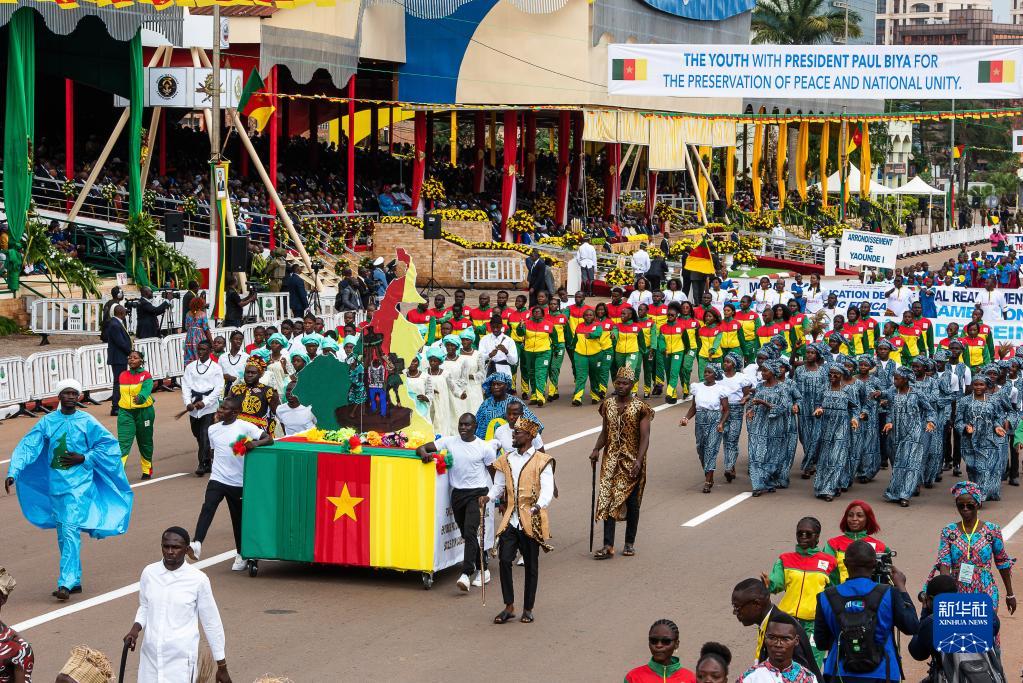 5月20日,在喀麥隆首都雅溫得舉行的國慶慶?;顒?dòng)上,民眾列隊行進(jìn)。