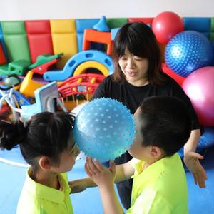 5月19日,莊巖帶著(zhù)學(xué)生在感統教室內進(jìn)行感覺(jué)統合訓練。